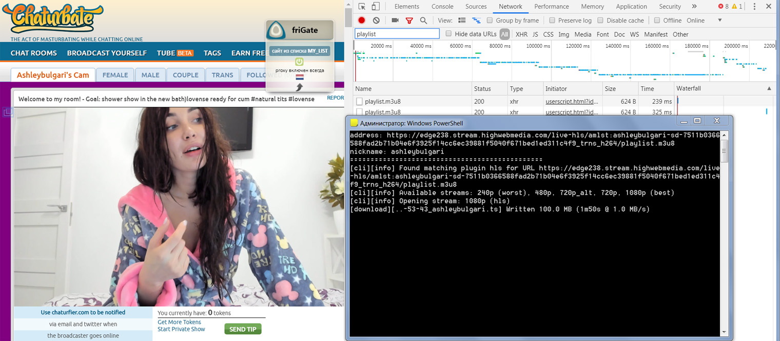 Добавлю, что для получения прямого адреса потока, в данном случае для Чатурбейта, удобно использовать браузер Chrome с выключенным Flash.