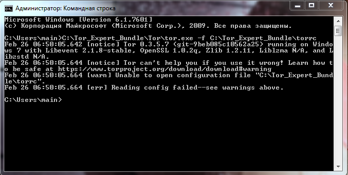 Конфигурационный файл "C:\Users\main\AppData\Roaming\tor\torrc" отсутствует, используются оптимальные значения по умолчанию.
