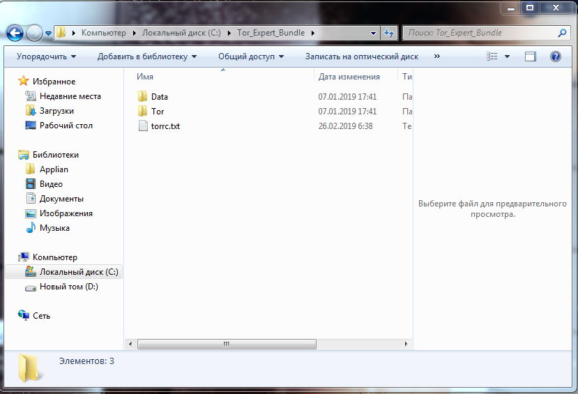 Распаковать архив, например, в созданную папку: C:\Tor_Expert_Bundle