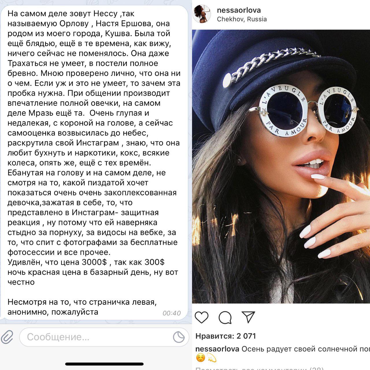 Есть один канал в телеге, там публикуют инфу об эскортницах из инсты. Часто мелькают веб модели. Вот из последнего на модель nessalin: