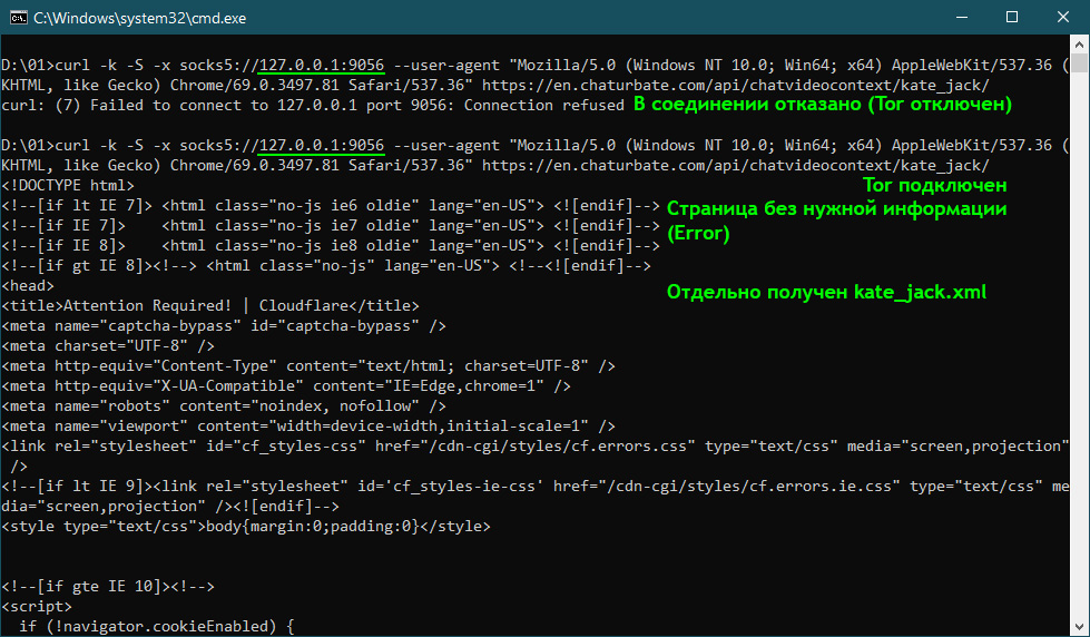 Еще любопытный момент. Утилите curl даже не требуется использовать юзер-агент для прикрытия (при запросе плейлиста на Чатуре), если в качестве прокси использовать SSH соединение или даже обычные прокси. То есть проблему вызывает, собственно, сам Тор.